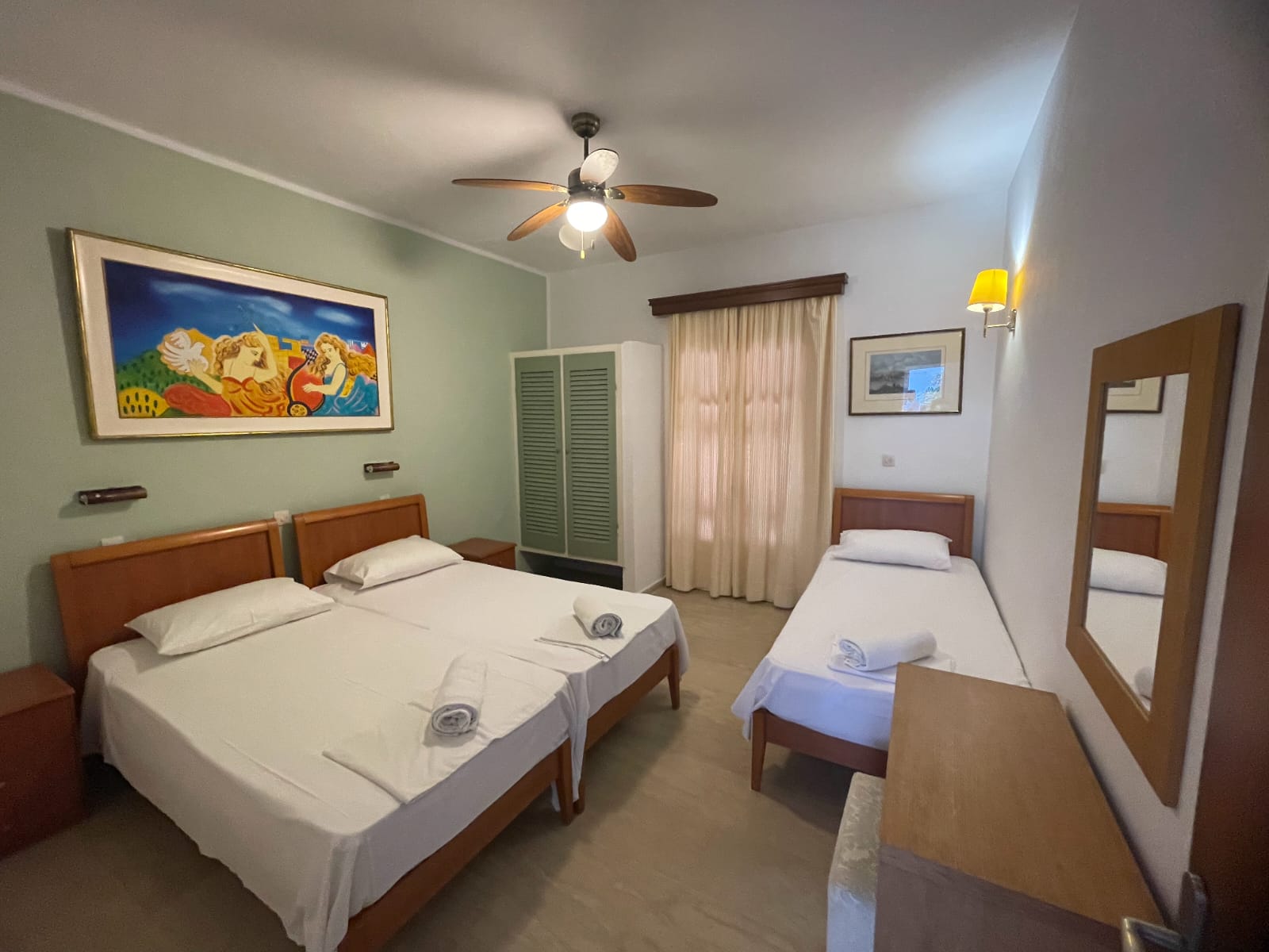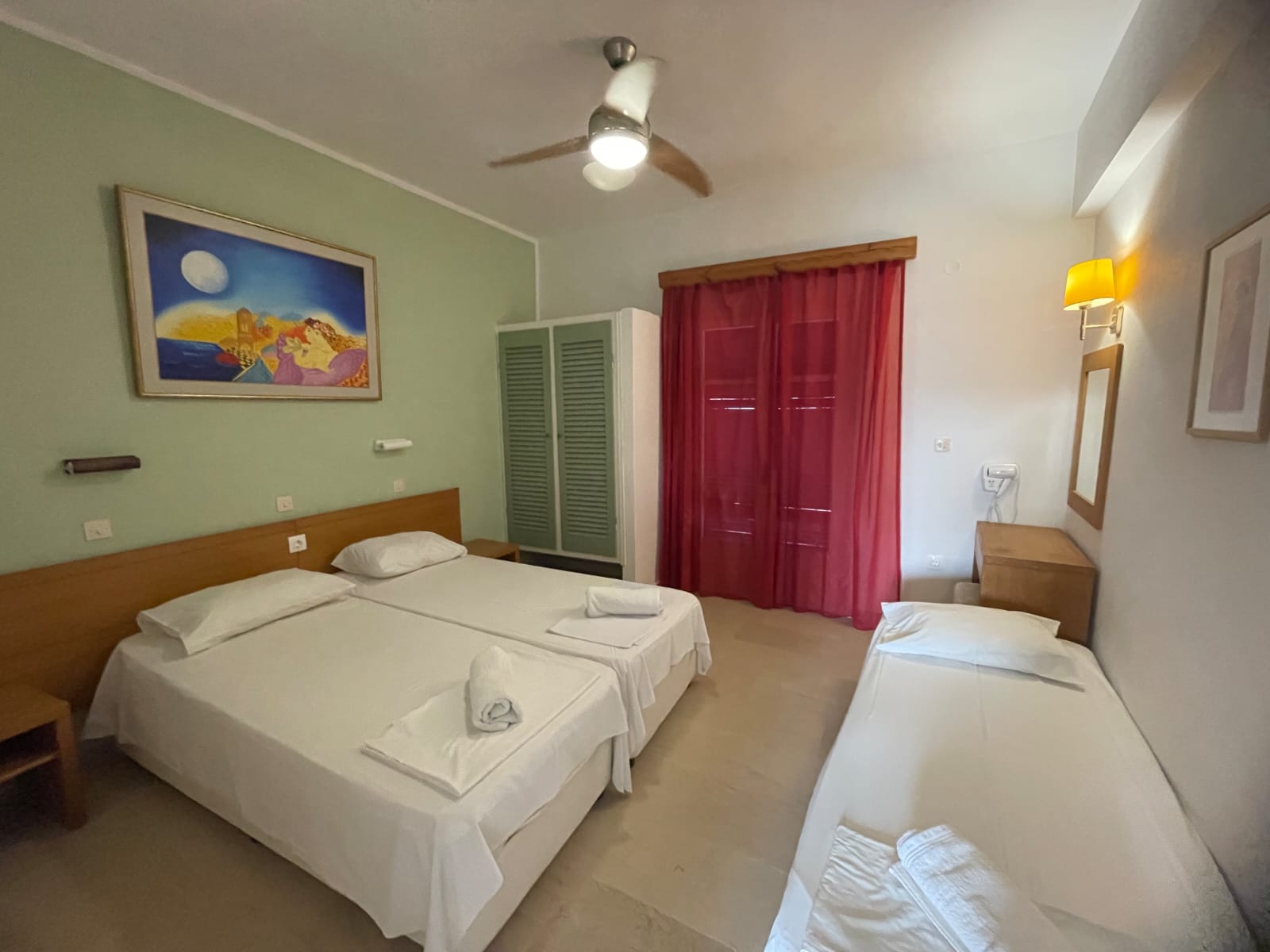 Kathrin apartments are centrally located in Ipsos-Pyrgi; just 450 meters from the sandy and shingle beach of Ipsos. Supermarket, shops, bars, restaurants, pubs and clubs are on site. ‘Kathrin apartments’’ is a 2 floor building with one bedroom apartments that accommodate 2 or 3 persons each and two bedroom apartments that accommodate 5-6 persons each. Dassia, Ipsos, Pyrgi: are resorts of busy tourist traffic and with every kind of restaurant, bar and night-club.